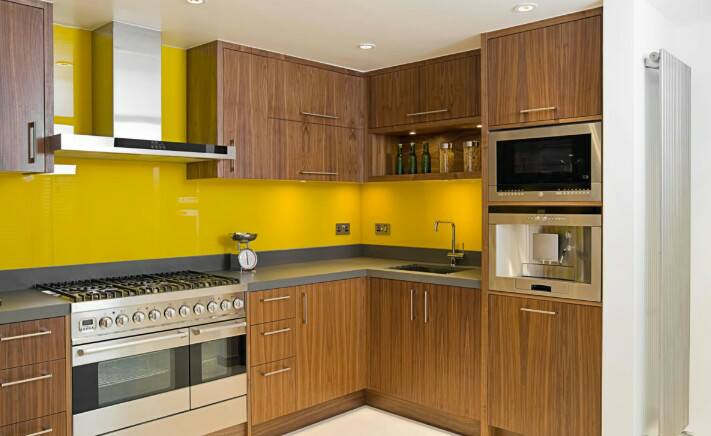 Người nội trợ là mệnh Thổ thì phần kính ốp bếp nên sử dụng tông màu vàng đất, màu nâu.
