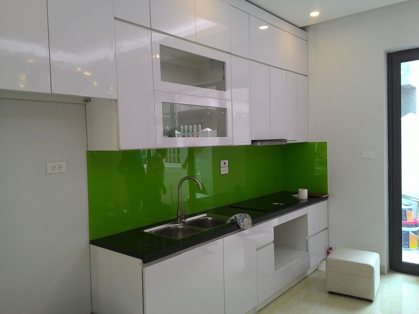 Không có lựa chọn nào phù hợp hơn là chọn màu đen cho phần kính ốp bếp. Màu đen nên thêm kim sa hoặc nhũ sẽ làm bếp nổi bật hơn rất nhiều. Màu trắng là màu tương sinh cũng giúp mang lại cho người mệnh Thủy nhiều may mắn.