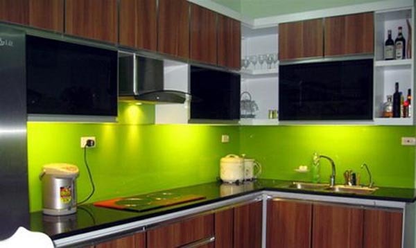 Chắc chắn là nên chọn màu xanh lá cây – màu của bản mệnh Mộc. Kính ốp bếp màu xanh non cũng là lựa chọn khá phổ biến hiện nay.